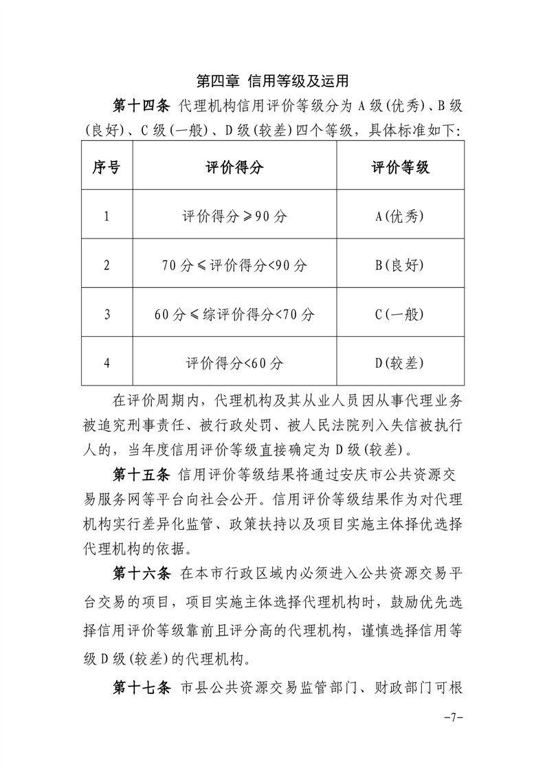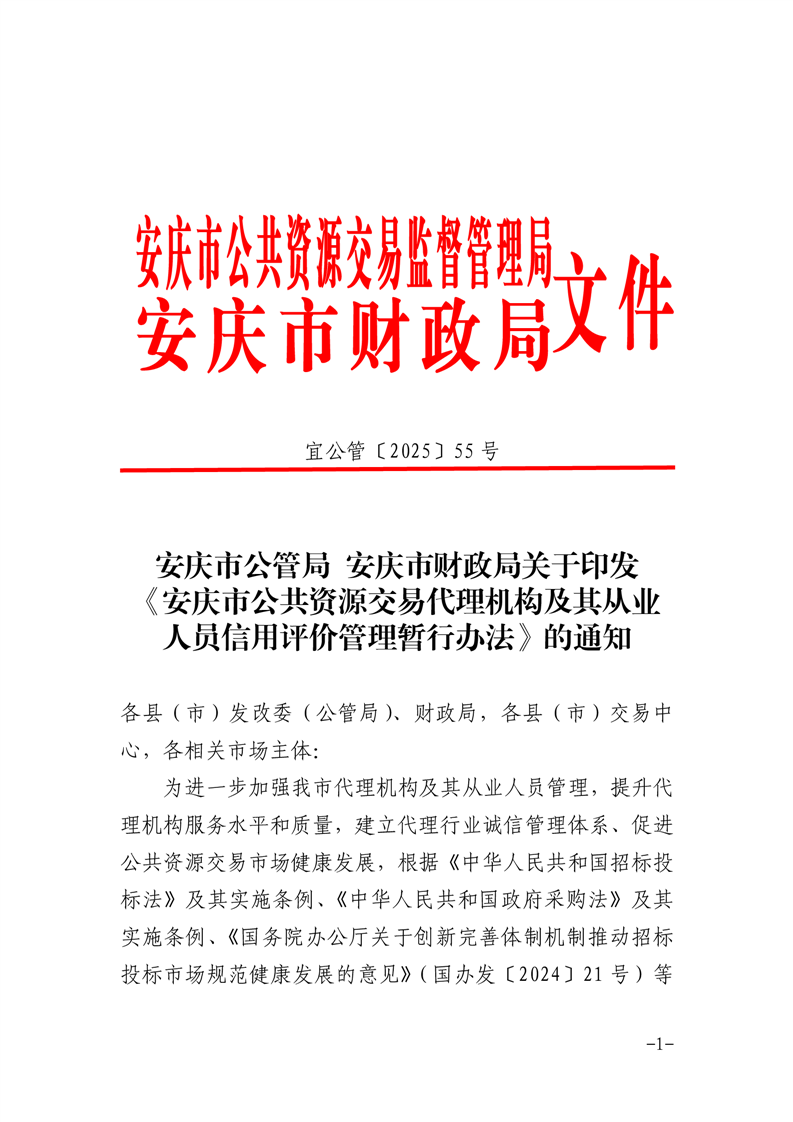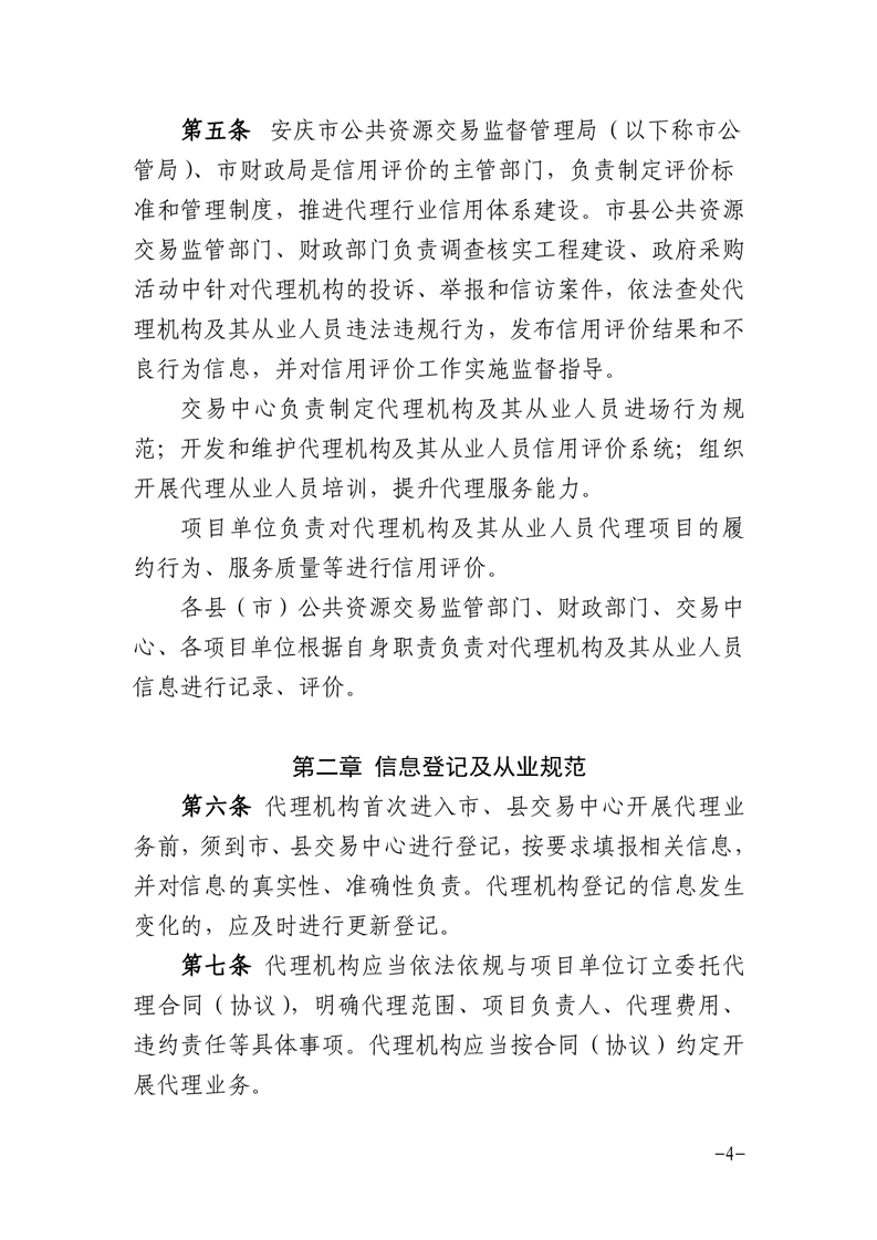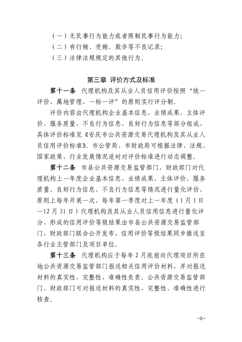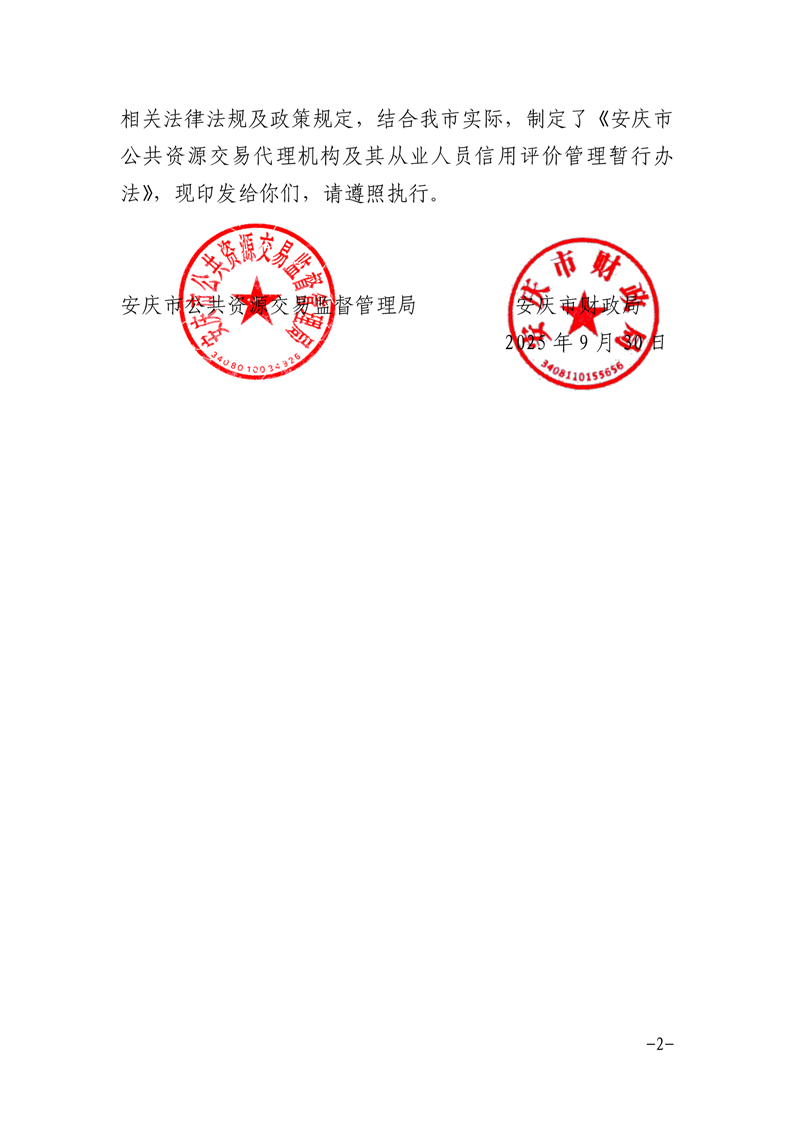 安慶市公管局 安慶市財(cái)政局關(guān)于印發(fā)《安慶市公共資源交易代理機(jī)構(gòu)及其從業(yè)人員信用評價管理暫行辦法》的通知